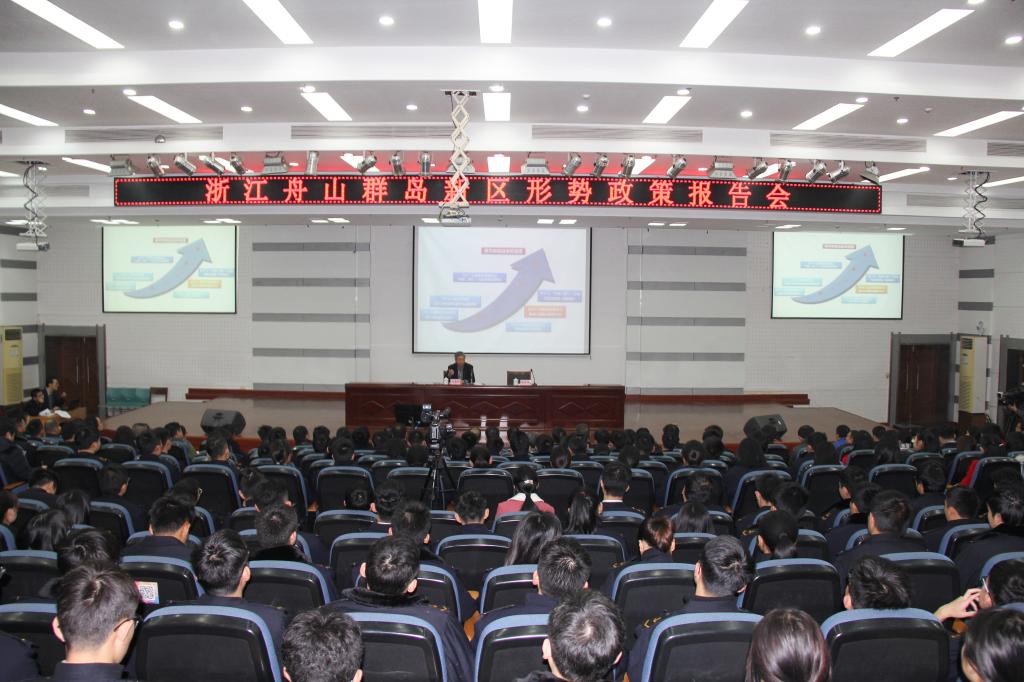 1月17日上午,学校图书馆四楼报告厅座无虚席。浙江舟山群岛新区党工委副书记、中国(浙江)自由贸易试验区管委会副主任马国华来到我校,走上讲台,为广大师生作了一场生动的形势政策报告,勉励莘莘学子立足舟山、建功立业,寄予青年学子殷切希望。