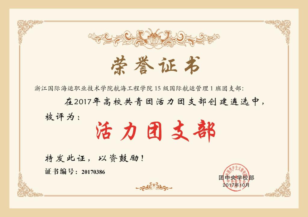 近日,团中央学校部公布了1000个团支部为2017年全国高校“活力团支部”,我校航海工程学院2015级国际航运管理1班团支部获得全国高校“活力团支部”荣誉称号。