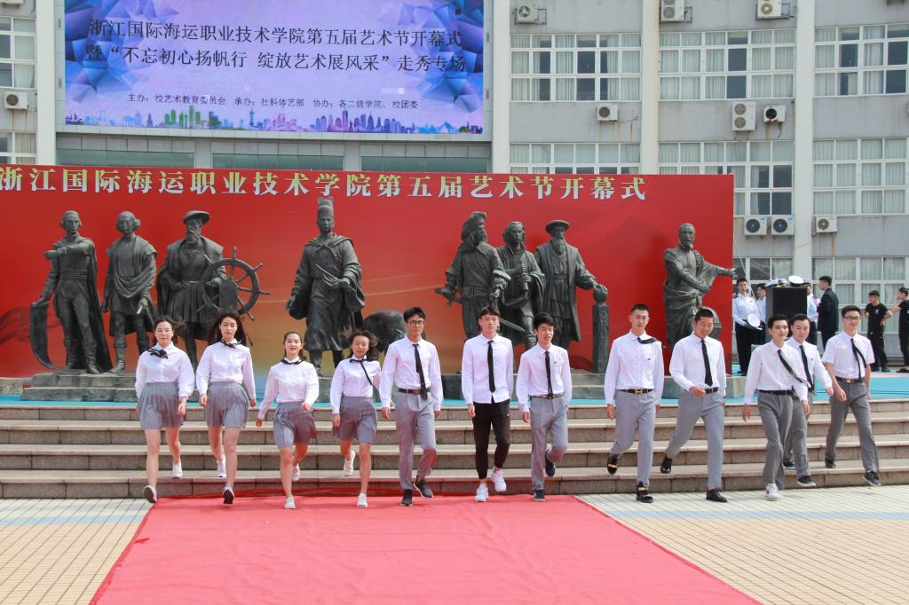 5月9日下午,学校第五届艺术节开幕式暨“不忘初心扬帆行 绽放艺术展风采”大型走秀专场表演在董浩云广场举行。校艺术教育委员会全体成员以及近三百多名学生参加了开幕式。校党委副书记、校艺术教育委员会副主任陈定樑为开幕式致辞,并宣布第五届艺术节开幕。