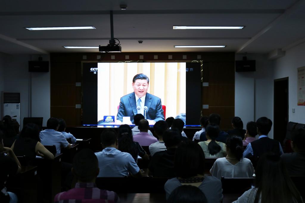 9月10日晚,我校师生代表50余人在行政楼401会议室集中收看中央电视台《新闻联播》,学习习近平总书记在全国教育大会上的重要讲话,深刻领会习近平总书记对广大教师和教育工作者的期望和要求。其余师生通过手机客户端、微信、微博、网络直播、宿舍电视等进行了深入学习领会。