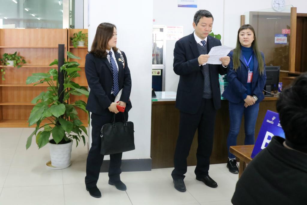 上午8点20分,校党委副书记、校长吴中平和党委副书记陈定樑来到董浩云图书馆,对竞赛准备工作进行巡视。校长一行先后来到选手检录处、加密抽签处、竞赛主场地等区域,仔细听取竞赛安排、人员配置等相关情况汇报,询问竞赛系统是否调试到位、竞赛服务有无疏漏之处。执委会成员们表示校方服务周全,一切准备就绪。