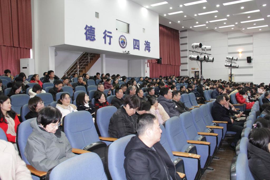 1月8日下午,学校在图书馆4楼报告厅召开了党的十九届四中全会精神集中辅导会。会议邀请了现任市委宣讲团成员、市委市政府政研室(新区发展研究院)副院长、浙江省海洋旅游协会副会长兼秘书长何军担任主讲嘉宾。校党委委员、副校长孔志光主持会议,全校教职工400余人参加集中学习。
