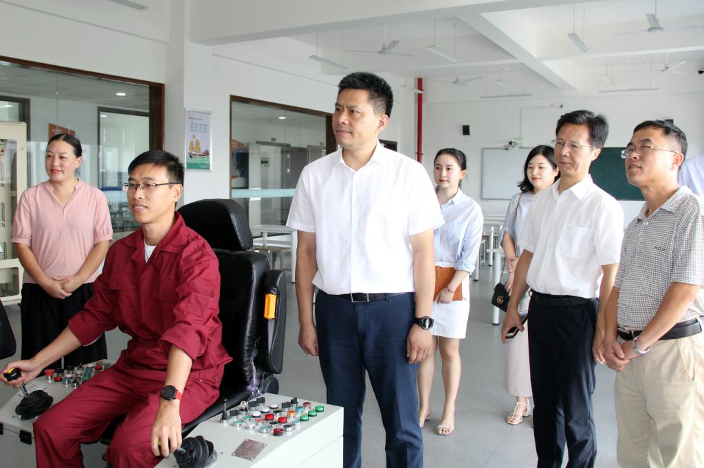 韩峻副市长一行参观了校史馆、综合实训楼、海邮驿站等实验实训场地,实地查看了航海模拟器和游艇模拟器。韩峻副市长表示赞许,说从很多细节反映出学校管理得很好。