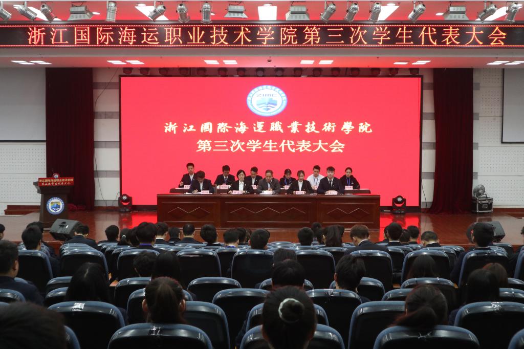 12月6日,我校第三次学生代表大会在董浩云图书馆报告厅隆重召开。学校党委委员、副校长曹志斌,浙江舟山群岛新区学生联合会执行主席黄江淮,浙江舟山群岛新区旅游与健康职业学院学生会执行主席金傲然,校团委书记金洁、各二级学院团委负责人和全体学代会代表出席会议。