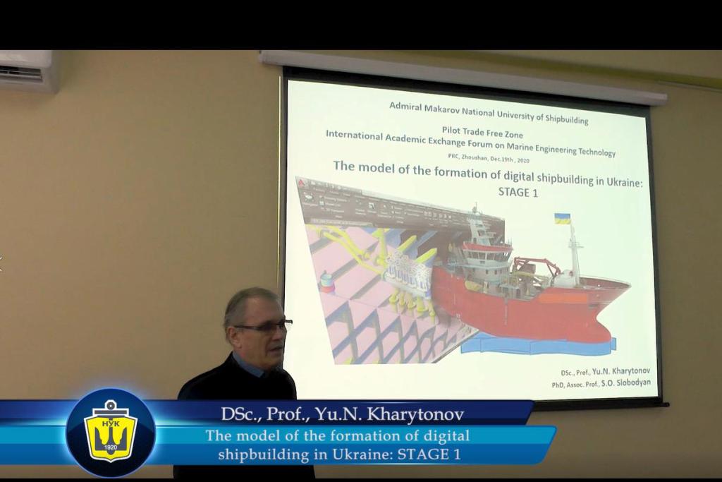 线上,乌克兰马卡洛夫国立造船大学教授邦达伦科和哈里托诺夫分别带来《船舶靠泊模拟仿真研究》《乌克兰数字化造船的形成模式》的主题报告。东京海洋大学教授村井康二、韩国首尔大学教授李信亨也通过视频交流分享。