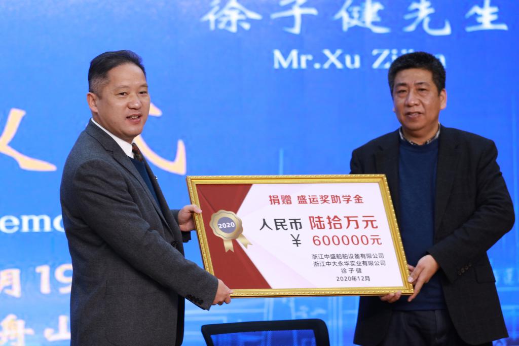 此外,浙江中盛船舶设备有限公司、浙江中大永华实业有限公司、徐子健先生捐赠60万元设立“盛运奖助学金”;舟山东方船员服务有限公司捐赠50万元设立“东方海员奖学金”,以资助家庭困难但品学兼优的学生投身海洋事业。