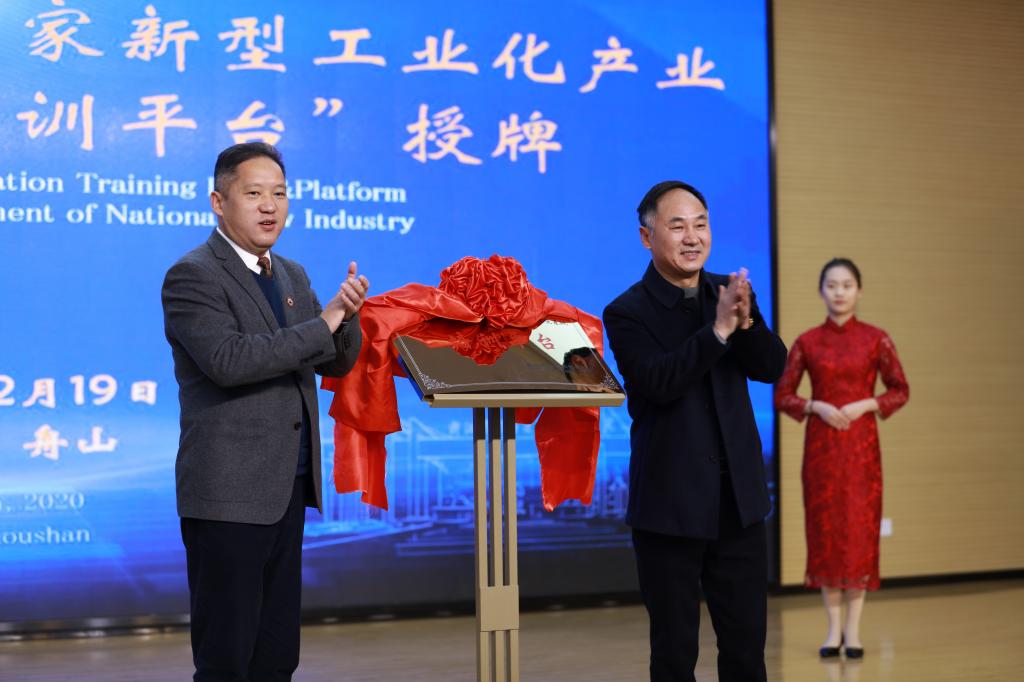舟山经济和信息化局为我校“船舶与海上装备国家新型工业化产业示范实训基地培训平台”授牌。
