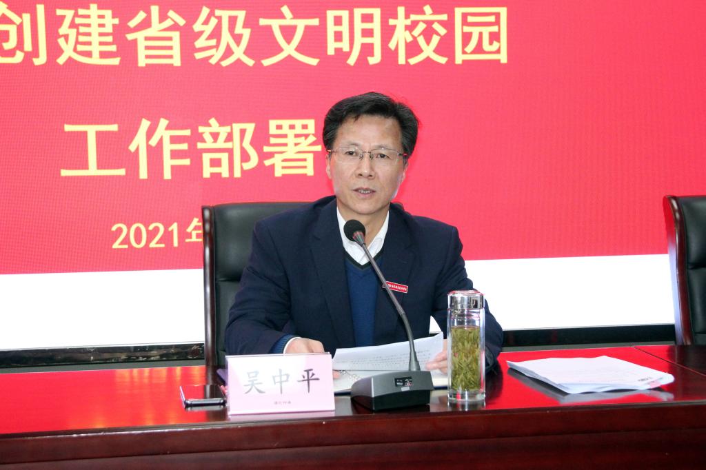 吴中平校长向学校创建全国文明城市暨省级文明单位先进个人表示祝贺,并向在学校文明创建工作中付出辛勤劳动的全体师生表示感谢。他对学校接下来的创建工作提出三点意见:一要充分认清学校创建更高水平全国文明城市暨省级文明校园创建工作的重要意义;二要对照创建全国文明城市测评体系,对标省级文明校园标准要求,高标准推进校园文明建设工作;三要广泛宣传,形成人人参与文明创建的良好氛围。