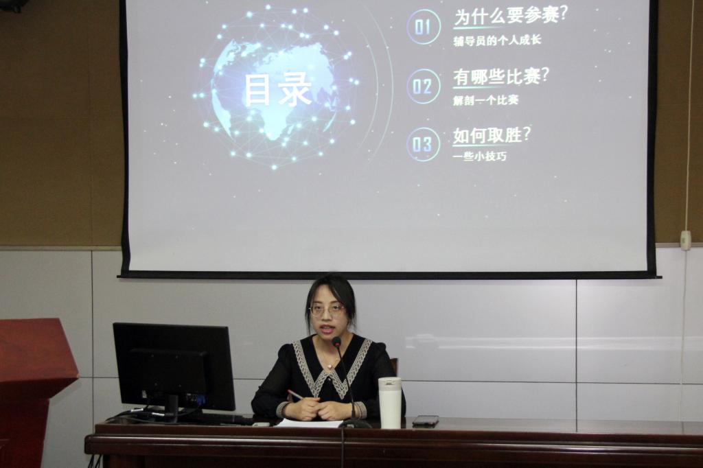 “勤实学堂”第一期培训班还邀请了浙江海洋大学海洋工程装备学院学工办主任,浙江省高校优秀辅导员、浙江省优秀教师蒋雅美,为大家做了题为《讲讲比赛那些事儿》的专题讲座。
