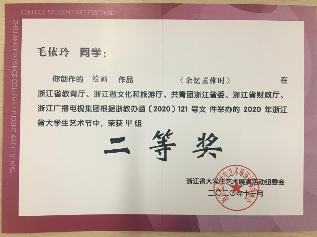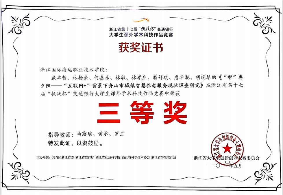 浙江省第十七届“挑战杯”大学生课外学术科技作品竞赛 二等奖