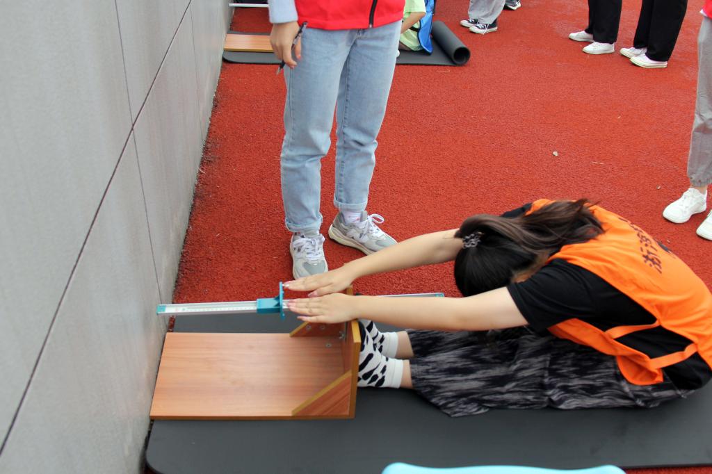早上7:30,参与体测的200名同学在体育老师的指导下,秩序井然地在田径场上进行着测试前的准备活动,随后有条不紊地完成了50米跑、坐位体前屈、立定跳远、男子引体向上、1000米跑;女子仰卧起坐、800米跑等5个项目的测试。
