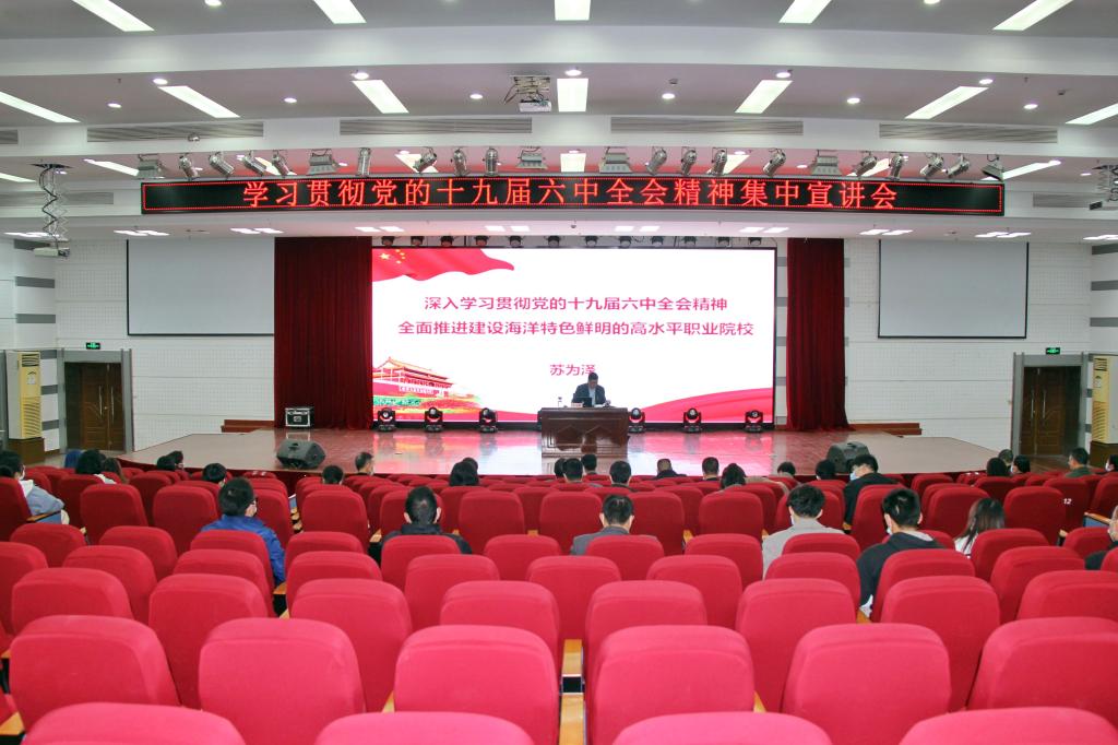 根据学校党委统一部署安排,为进一步引导学校广大师生党员深刻学习领会党的十九届六中全会精神,12月8日下午,校党委书记苏为泽在董浩云图书馆四楼报告厅以“深入学习贯彻党的十九届六中全会精神 全面推进建设海洋特色鲜明的高水平职业院校”为题开展了党的十九届六中全会精神主题宣讲。校领导、全体中层正职及以上干部、教师党员和学生党员代表近百人聆听了党课。