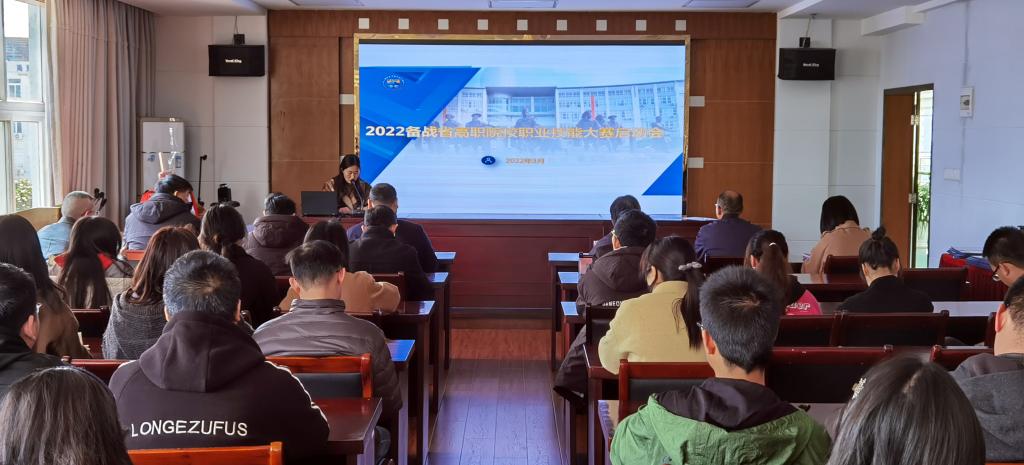 为进一步落实浙江省高职院校职业能力大赛组委会《浙江省高职院校职业能力大赛组委会关于组织申报2022-2023年浙江省职业院校技能大赛高职组赛项承办单位的通知》的各项工作,凝聚力量推动我校赛前训练的时效性,做好备赛工作,力争在省赛中取得佳绩,3月23日下午,教务处在行政楼401会议室召开了2022备战浙江省高职院校技能大赛启动会。副校长李丽、教务处处长史方敏、国际教育学院院长吴旭光、各二级学院竞赛负责人、赛项指导教师和参赛队员代表等共计40余人参加了此次会议。