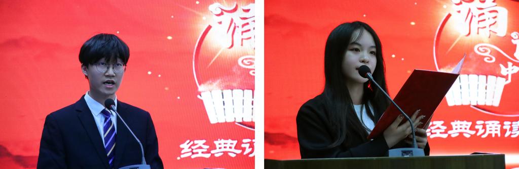 本次比赛由古代诗文朗诵和备稿演讲两个环节组成,分别从不同的角度考查参赛选手对于汉语的理解、掌握和运用能力。比赛中,选手们全身心投入,时而如洪钟铿锵有力,时而如细雨轻柔绵长,时而如小桥流水拨动心弦,将比赛一次次推向高潮。选手们朗诵了《纪念碑》、《黄河之水天上来》和《新生的中国力量》等多篇经典诗文,一个个诵读歌颂建党百年光辉历程、展现举世瞩目伟大成就的经典作品,带领我们走进底蕴深厚的民族文化,感受经典诵读的魅力,以蓬勃的朝气,展现出当代青年的激昂风采。