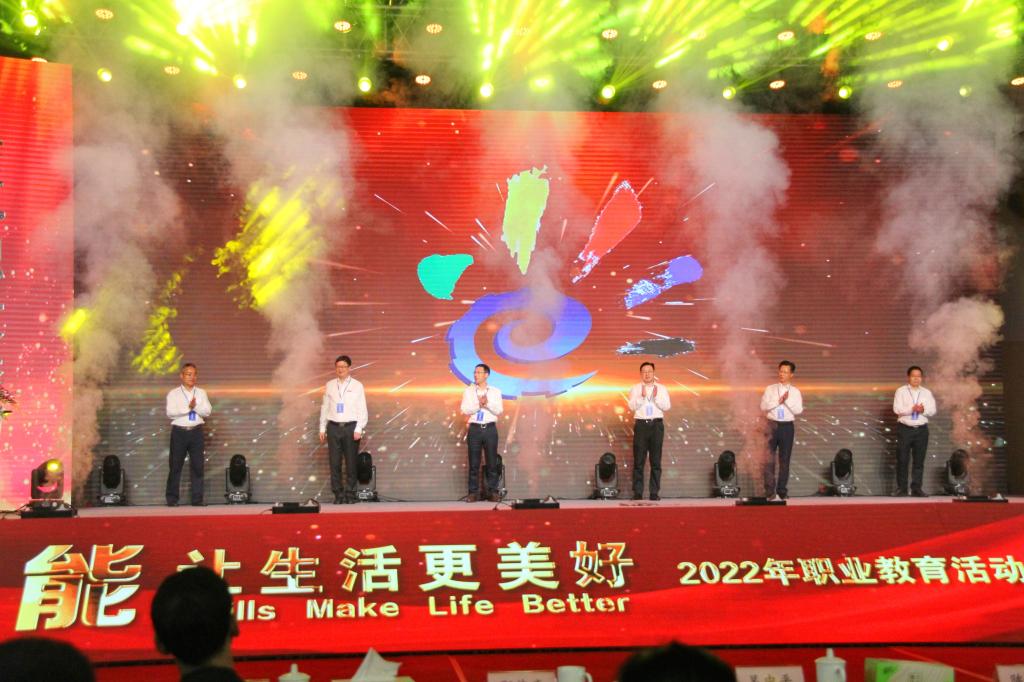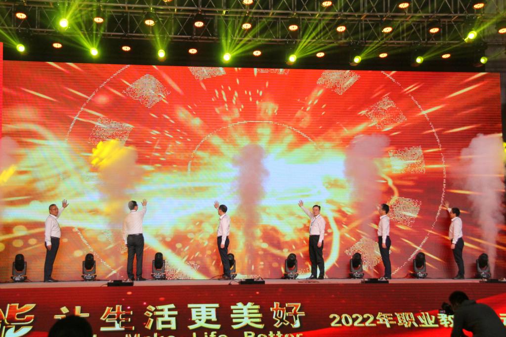 厉仁军、陈海波、苏为泽、吴中平、郑能波、邵伟康等6名领导上台,共同按下职业教育成果展示活动的启动键。