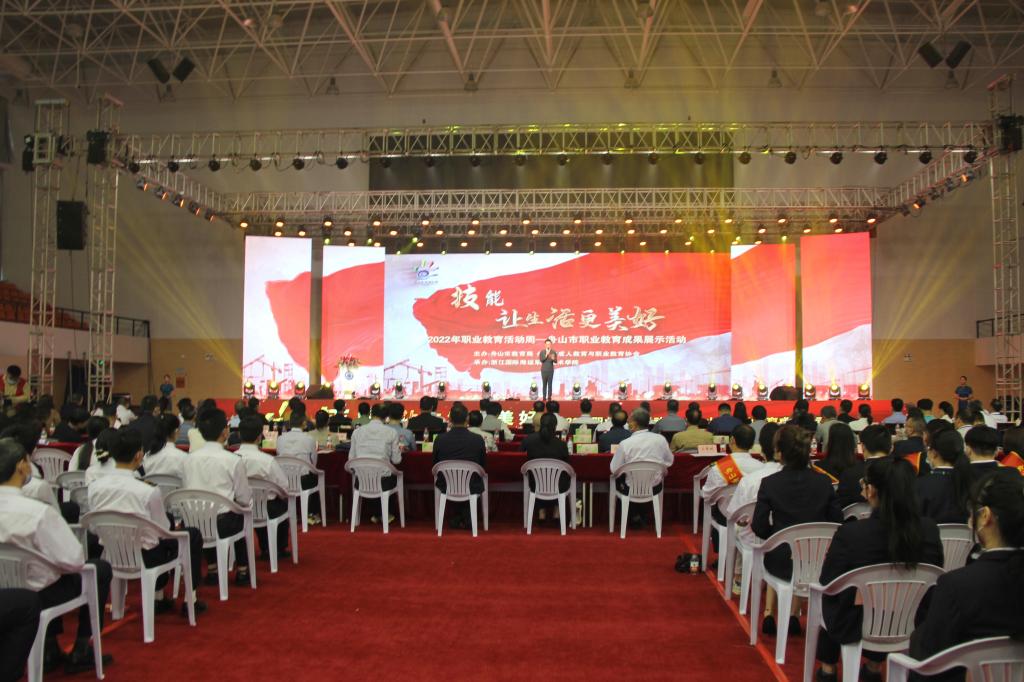 发展职业教育,助力共同富裕。“技能,让生活更美好”2022年职业教育活动周——舟山市职业教育成果展示活动于5月28日上午在我校体育馆隆重举行。作为新修订《职业教育法》施行后的首次职业教育成果展示活动,意义非凡!舟山市人民政府副秘书长厉仁军,舟山市教育局党委书记、局长陈海波,舟山市部分局办、在舟中职学校、部分高中学校以及部分行业协会、合作企业代表等80名领导嘉宾和240余名学生共同参会。