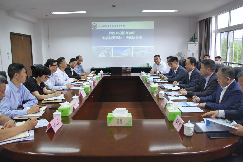 6月1日下午,招商局能源运输股份有限公司董事长谢春林、招商轮船副总经理兼海宏香港总经理胡斌、广州海顺船务有限公司总经理刘如松、香港明华船务有限公司副总经理王晓冬等一行在舟山市港航和口岸管理局党委委员、副局长曹军的陪同下来校进行深度产教融合洽谈。校党委书记苏为泽、校长吴中平接待来宾并进行座谈交流。