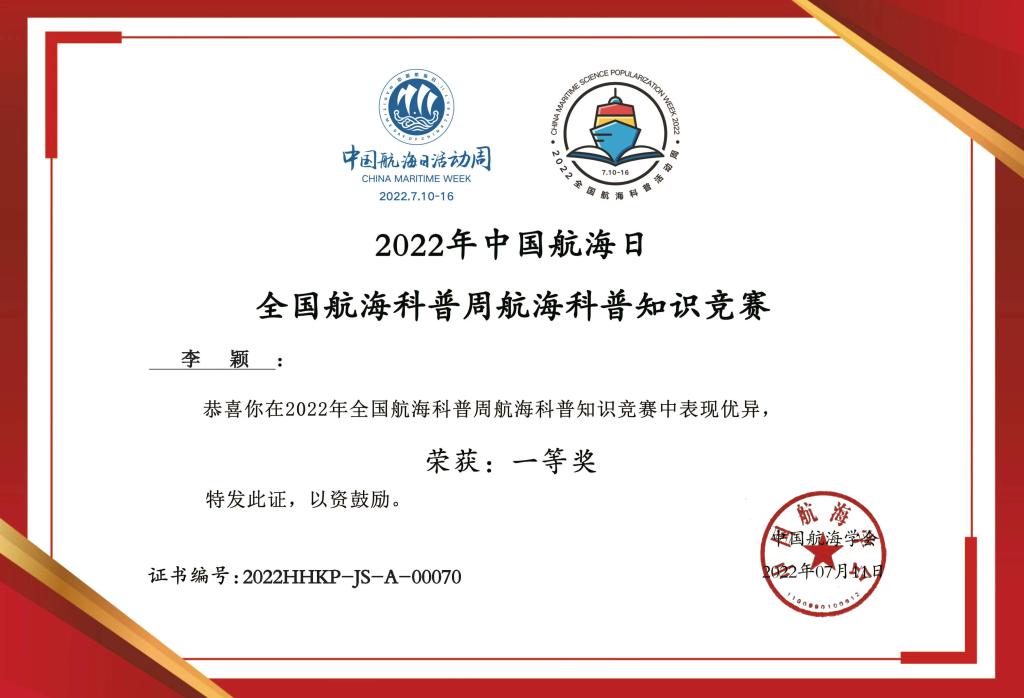 近日,2022年全国航海科普知识竞赛获奖名单公布,航海工程学院参赛学生成绩喜人,荣获一等奖1项、二等奖4项、三等奖5项。这是我校首次在该赛项上获奖,也是今年浙江省唯一获奖的航海类院校。