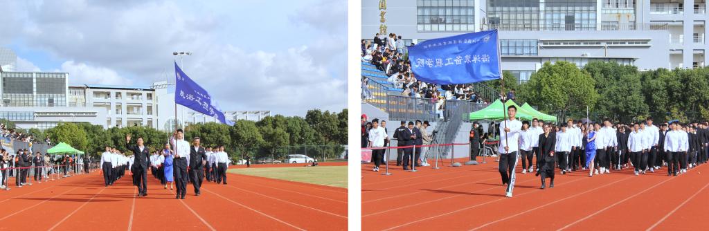 伴随着运动员进行曲,英姿飒爽的国旗护卫队、团学干部组成的彩旗队、裁判员方阵迈着整齐的步伐入场。各二级学院师生组成的运动员方阵队伍,昂首阔步、英姿飒爽地通过主席台,接受检阅。他们以昂扬的姿态和嘹亮的口号吹响了新征程上更嘹亮的体育号角,展现了海运学子健康、蓬勃、活力的青春风采。