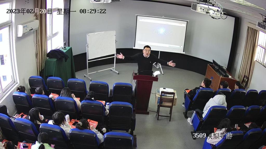 通过教学监控视频,吴中平校长特别表扬了港口管理学院靳荣利老师、航海工程学院王雪峰老师、海洋旅游学院任福来老师,讲课激情飞扬,学生精神饱满,个个抬着头,听得津津有味。