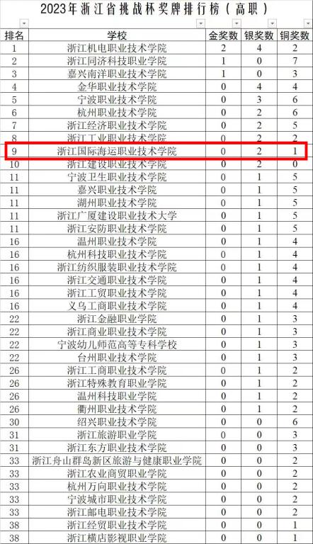 5月19日-21日,由共青团浙江省委、浙江省教育厅、浙江省社会科学院、浙江省科学技术协会、浙江省学生联合会主办的浙江省第十八届“挑战杯”大学生课外学术科技作品竞赛在杭州师范大学举办。经过激烈角逐,我校获得了二银一铜的优异成绩,位列浙江省高职院校奖牌排行榜第九名。