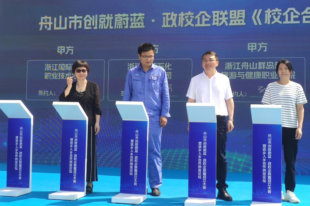 为促进高校毕业生留舟就业创业,推动本土企业人才引进和技能提升,推进海岛乡村共同富裕以及乡村振兴,6月9日上午,舟山市“创就蔚蓝”政校企联盟成立大会在定海区小沙街道三毛文化村乡创基地隆重举行。