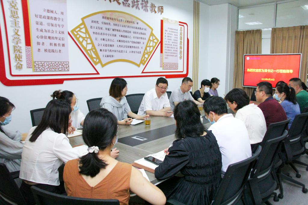 在听取汇报后,苏为泽书记首先肯定了马院这两年不断扩大的影响力、在全市大中小学思政课一体化工作上的探索和努力、“海德宣讲团”宣讲二十大精神的成绩,同时肯定了马院全体思政教师的工作状态和精气神,还对大家提出的意见和建议逐一作了回复和说明,希望大家继续努力,“在马言马”,“在马信马”,办好思政课,守住主阵地。