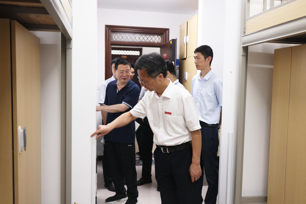 暑期将至,为有效防范和化解各类安全风险隐患,营造稳定有序的假期校园环境,筑牢校园安全防线,同时为确保亚运期间师生学习生活安全有序,6月30日上午,吴中平校长带队开展期末校园安全检查工作,党委副书记孔志光,党委委员、副校长曹志斌,办公室、宣传部、保卫处、学生处、后勤产业处等部门负责人及相关工作人员陪同检查。