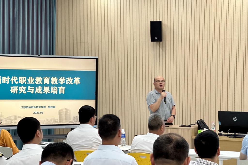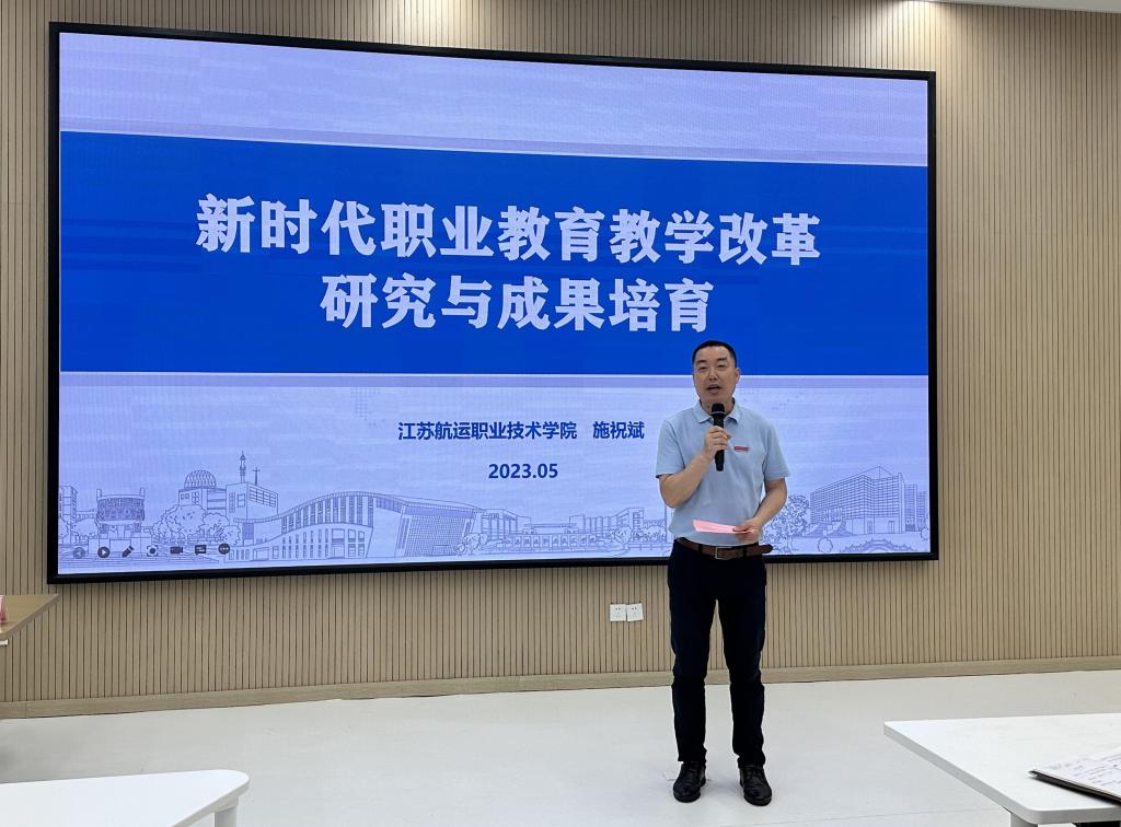 为持续深化教育教学改革研究与实践,培育优秀教育教学成果,6月28日下午,我校特邀江苏航运职业技术学院总督学施祝斌教授来校做教学改革与成果培育专题报告。本次报告会由党委委员、宣传部部长陈永芳主持,学校教学工作委员会委员、各二级学院院长、副院长、各专业教学团队负责人及部分骨干教师参加了会议。