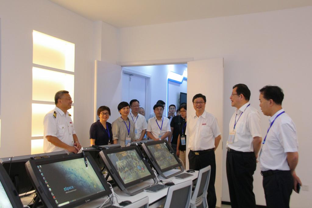 调研组一行参观了学校航海模拟器、游艇模拟器、轮机模拟器和国家级航海虚拟仿真中心,深入了解我校的办学条件、实习实训、人才培养和产教融合等方面工作开展情况。