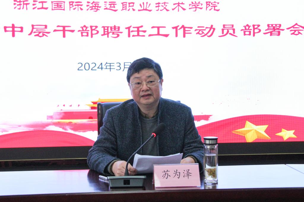 苏为泽对学校《第七轮中层干部聘任方案》作了详细解读。他强调,中层干部聘任工作是在学校加快建设海洋特色鲜明的高水平职业院校、推进“双高”建设、培养高素养劳动者等重大任务,奋力推进学校各项事业高质量发展的关键时期进行的,是学校政治生活中的一件大事,事关学校未来改革发展稳定大局,意义重大。