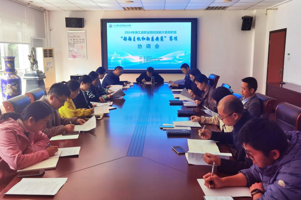 为做好2024年浙江省职业院校技能大赛高职组“船舶主机和轴系安装”赛项承办任务,3月27日,学校在行政楼103会议室召开“船舶主机和轴系安装”赛项协调会。校长吴中平,办公室、宣传部、纪委办、保卫工作部、教务处、计财处、后勤产业处、数字技术中心、校团委以及承办赛项的海洋装备工程学院等部门负责人参加会议。