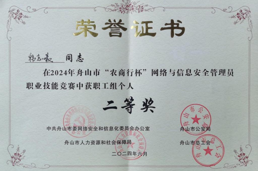 经过一整天的激烈比拼,我校数字技术中心技术员、大数据技术教学团队教师韩志豪凭借实操分数第一,总分第二的成绩获得二等奖。根据竞赛奖励措施,职工组一、二等奖选手授予“舟山工匠”荣誉称号,年龄在35周岁以下的,同时授予“舟山市青年岗位能手”的称号。