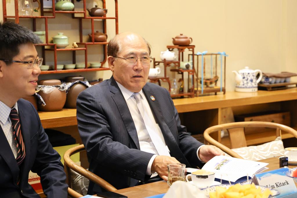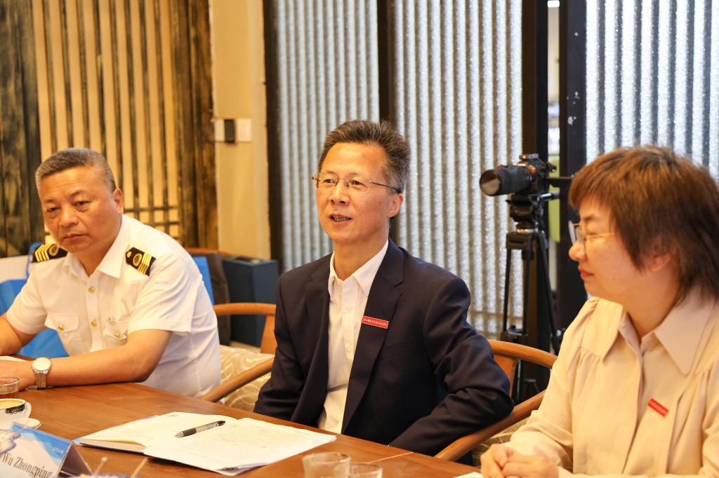 随后林基泽先生来到海邮驿站与学校领导进行了亲切交流。吴中平校长对林基泽先生来访我校表示热烈欢迎,并介绍了我校的办学历史、办学特色、发展现状及近年来取得的办学成效等。期间,林基泽先生仔细询问了我校与世界知名航运企业的合作情况,培养的学生在航运业中的就业情况等,他对我校办学成果给予了高度肯定,充分认可我校为世界航运业输送了大批职业能力强、敬业精神好的优秀船员贡献了重要力量。