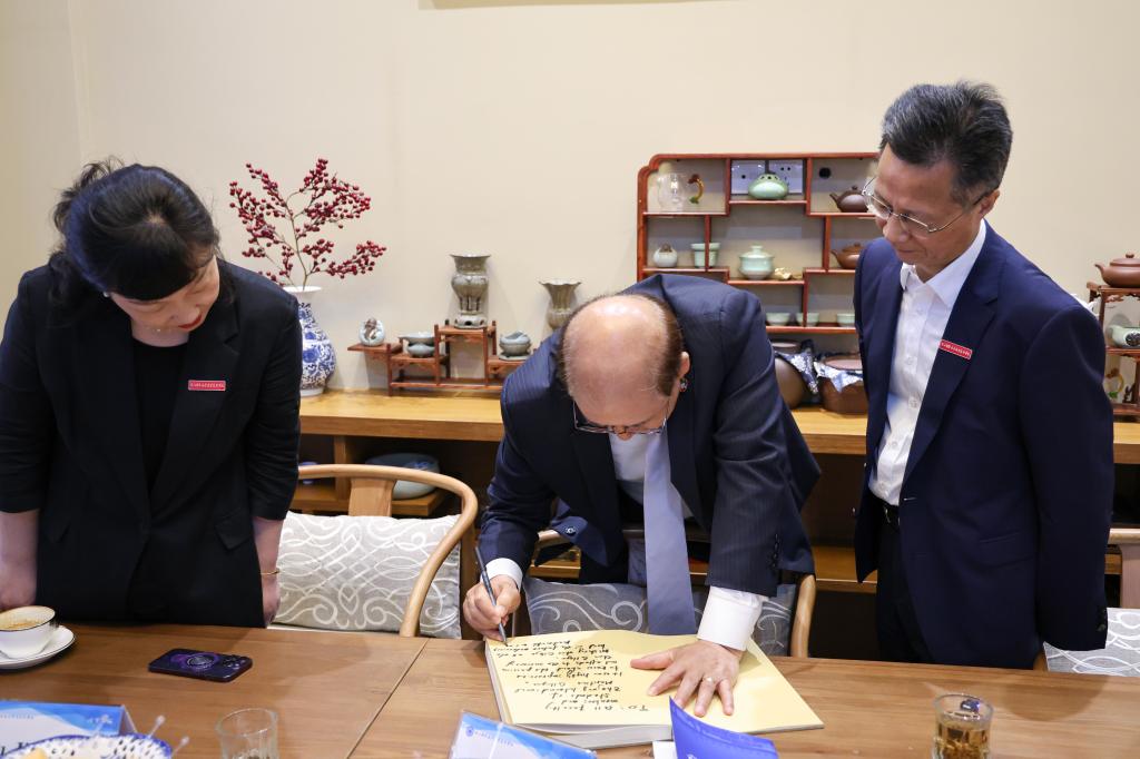 会谈结束后,林基泽先生热心为我校师生亲笔题词,希望我校要始终坚持“面向世界”的国际化办学定位,努力践行培养高素质国际船员的责任与使命,办成一所具有国际影响力的高水平院校。(航海工程学院、致远创业学院、办公室)