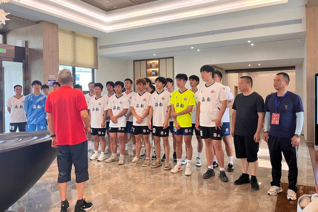 在比赛期间,运动员们队伍整齐,纪律严明,受到市足协领导的肯定和表扬。为参加沙足比赛,文化体育部和校团委在4月初联合举办了第五届“海韵杯”足球联赛,从中挑选了喜欢足球运动、体能好、技术过硬的学生组建足球队并坚持训练。为了让学生适应沙足比赛,文化体育部还联系了市体育馆,每周带队员到沙足场地训练。