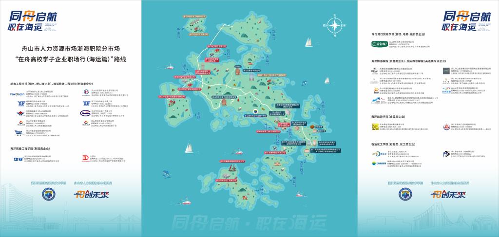 会上展播了大学生留舟就业创业政策视频,并正式推出舟山市人力资源市场浙海职院分市场“在舟高校学子企业职场行(海运篇)路线”。