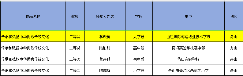 6月19日,由浙江省教育厅主办,杭州市教育局、浙大城市学院和浙江理工大学承办的浙江省大中小学思政教育一体化示范“金课”年度展示活动在杭州举行。在舟山市教育局推荐的2支“金课”团队中,以我校马克思主义学院李晓璐老师为主力成员的大中小学思政课一体化“金课”团队,以《传承和弘扬中华优秀传统文化》为主题,荣获全省大中小学思政课一体化示范“金课”二等奖,为学校思政课建设工作争得新荣誉。