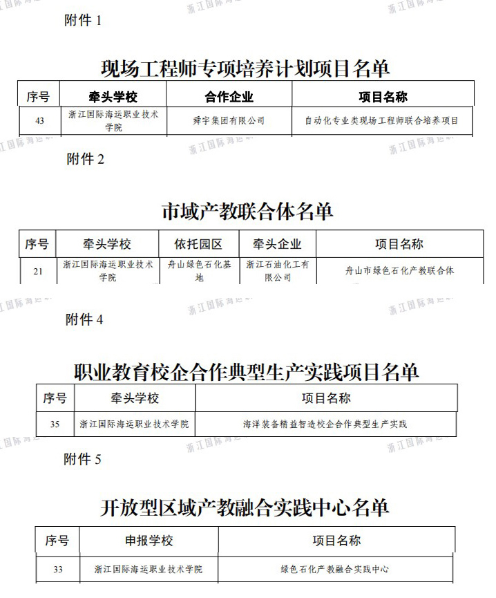 近日,浙江省教育厅公布了2024年职业教育产教融合相关项目名单,我校遴选报送的4个项目全部获得立项。其中,“自动化专业类现场工程师联合培养项目”入选省级现场工程师专项培养计划项目,“舟山市绿色石化产教联合体”入选省级市域产教联合体,“海洋装备精益智造校企合作典型生产实践”入选省级校企合作典型生产实践项目,“绿色石化产教融合实践中心”获批省级开放型区域产教融合实践中心。