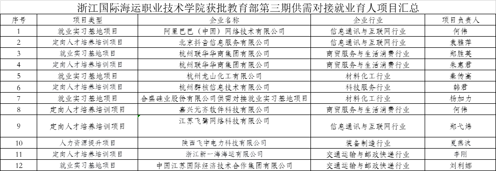 我校12个项目获批教育部第三期供需对接就业育人项目