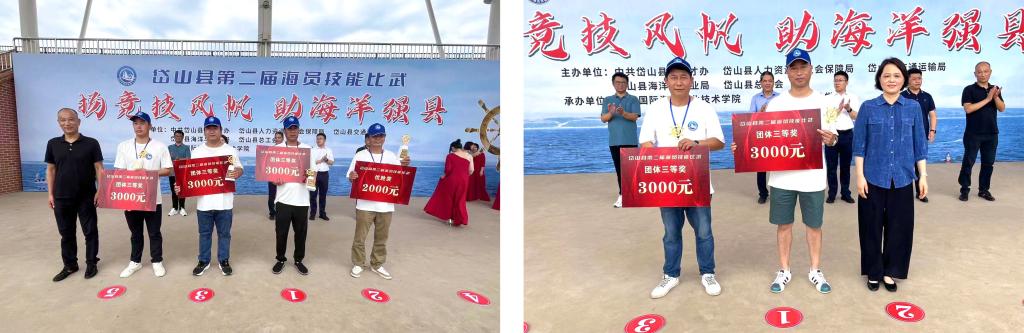 各个队伍都展现出了高超的技能水平和顽强的拼搏精神,经过激烈角逐,渔船组方面,海洋经济发展队、获得一等奖,岱东镇代表队、衢山镇代表队获得二等奖,东沙镇代表队、高亭镇代表队、长涂镇代表队获得三等奖,岱西镇代表队获得团体总分优胜奖。海船组方面,蓬莱客运代表队荣获一等奖,岱山中昌海运代表队、舟山浙石化舟港拖轮代表队获得二等奖,高亭海运联队、舟山鸿德海运代表队获得三等奖。