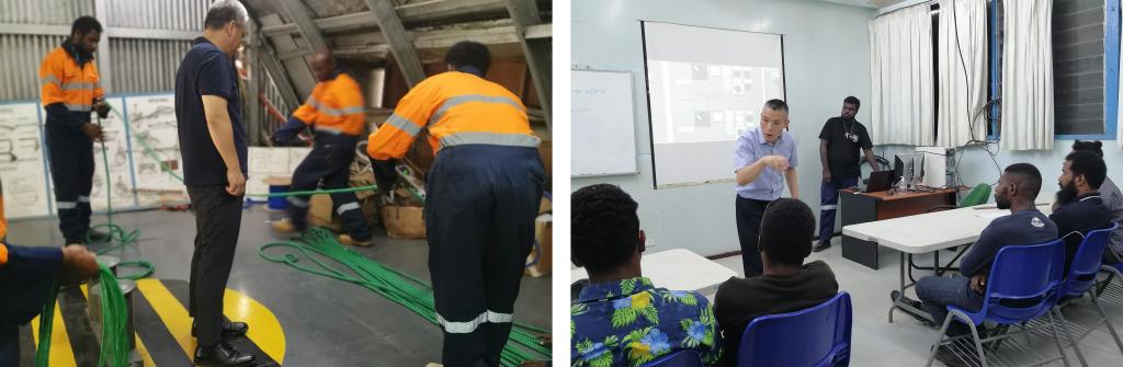 由于本次支教任务重,时间紧,在和教务长协商后,按照支教团队制定的任务,第二天对学院教师和学生分别进行了授课,按照授课计划,由张如林老师负责水手工艺、船舶安全航行及普通话;徐惠华老师负责培训巴新师资及机工业务。经过几天的磨合,教学效果良好,收到教师和学生的一致好评。