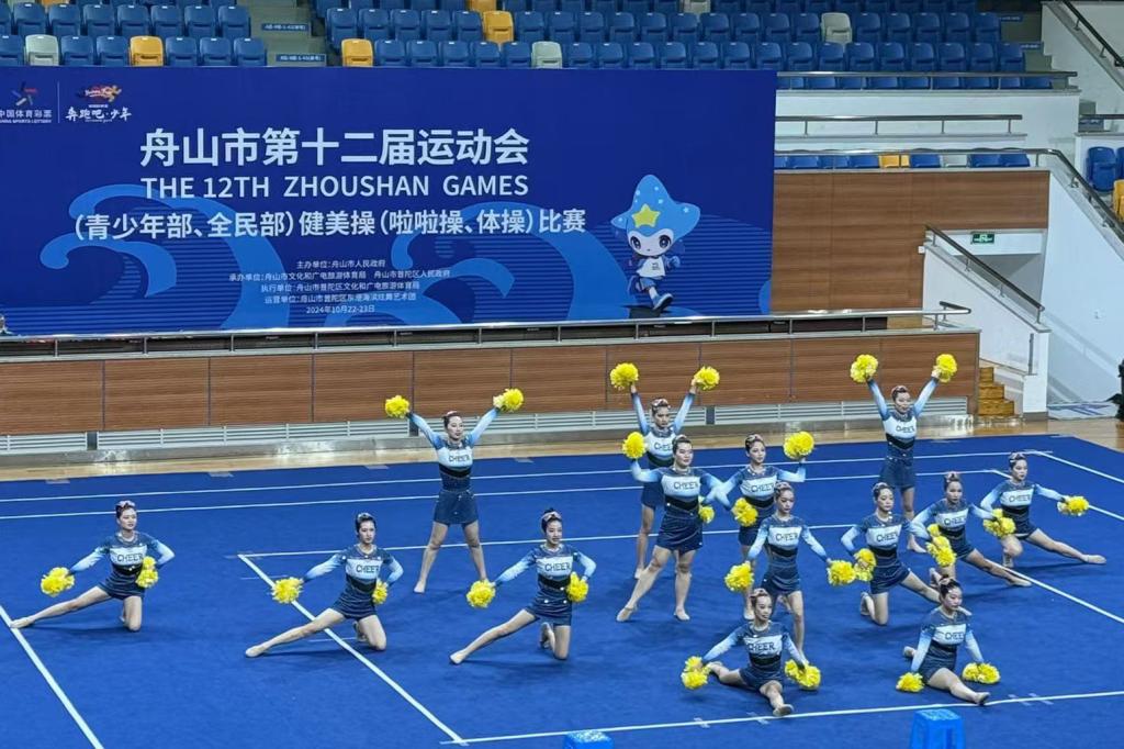 10月23日下午,舟山市第十二届运动会全民部健美操(啦啦操)比赛在普陀体育馆举行,来自浙大海洋学院代表队、普陀区代表队等多支队伍进行了角逐,我校14朵“金花”在教练曹伊玲、王静轩两位老师的带领下参加了啦啦操规定套路:办公室啦啦操《热力全开》项目的比赛。