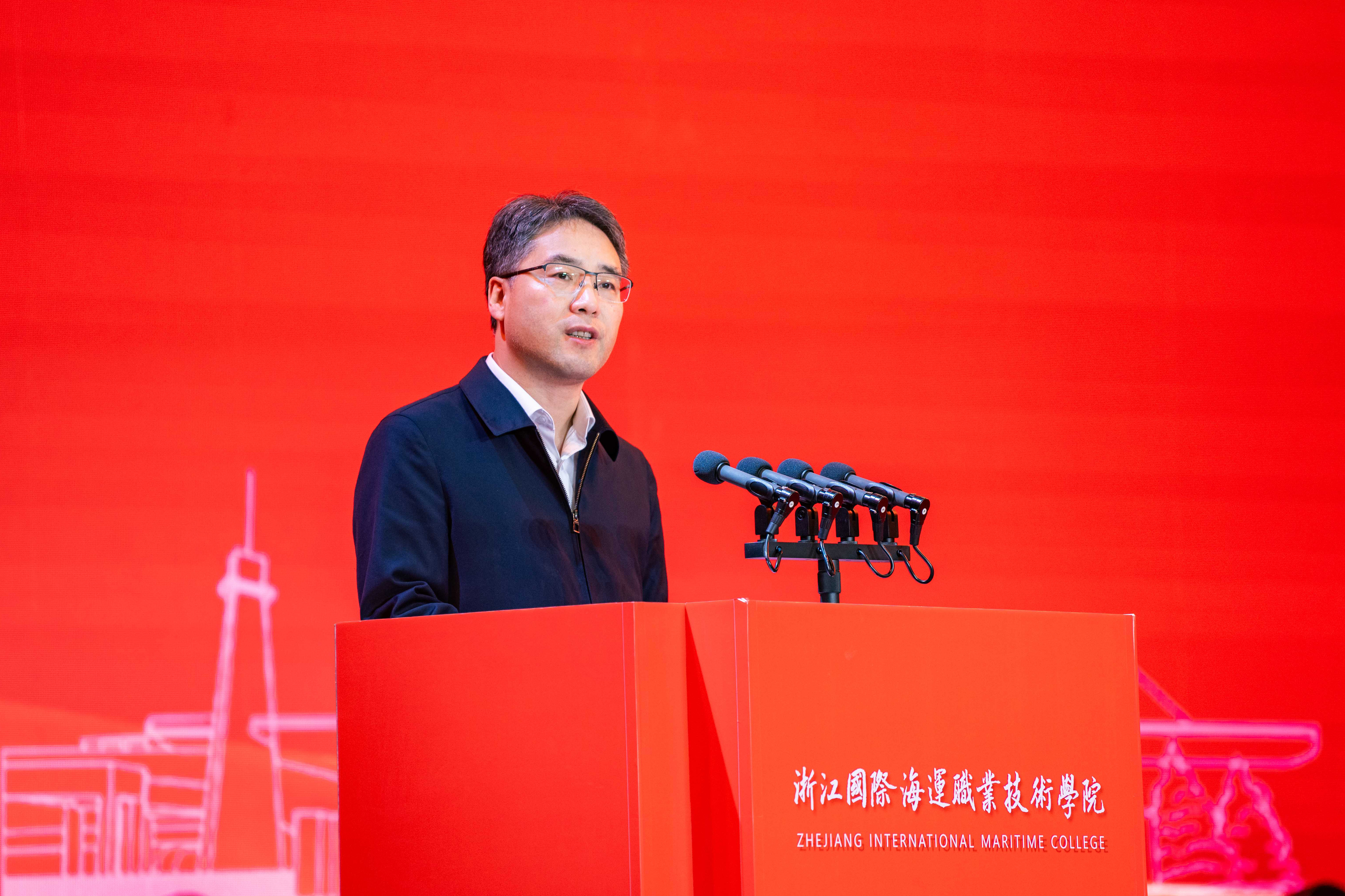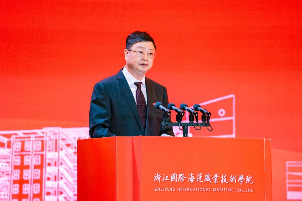 浙江省教育厅副厅长陈峰代表省教育厅对学校40年艰苦办学取得的成绩给予了充分肯定。海运人扎根海岛、坚守海洋、艰苦奋斗、勤勉务实,为社会培养培训了20余万名技术技能人才和高素质劳动者,为我国的港航、物流、石化等行业作出了重要的贡献。同时希望学校要以40年校庆为新的起点,进一步分析形势、明确方向、找准赛道、谋划思路,争取在新一轮高等教育发展大潮中争先进位。并对学校下一个40年的发展提出了深刻而精辟的四点建议:一要开拓“国际”视野。学校要做强做优“国际”这一特色,推进高水平对外开放和交流,不断学习借鉴国际先进教育经验、引进优质教育资源,加快国际化人才培养,努力建成高等教育国际化的高地;二要坚守“海运”特色。国家高等教育人才培养的数量和质量还无法满足海洋强国战略的需要。学校要胸怀“国之大者”,从国家战略和经济社会发展出发,始终坚守“海字号”高等院校的办学目标和办学特色,切实把涉海类专业办好办强,努力打造人无我有的新优势、新品牌、新高峰;三要发扬“技术”优势。学校要紧密跟踪生产第一线的现实需求和发展趋势,不断改进教育教学方式和人才培养模式,更加突出职业实践能力、职业适应能力、职业创新能力的培养;四要涵养“大学”气派。学校要按照大学的规格、标准和要求办学治校,全面提升内部治理水平,全面加强学科专业建设、全面优化人才培养体系。祝愿学校进一步增强自信自立自强精神,进一步用好“港口这个最大的资源”“开放这个最大的优势”,早日建成高水平职业技术大学。