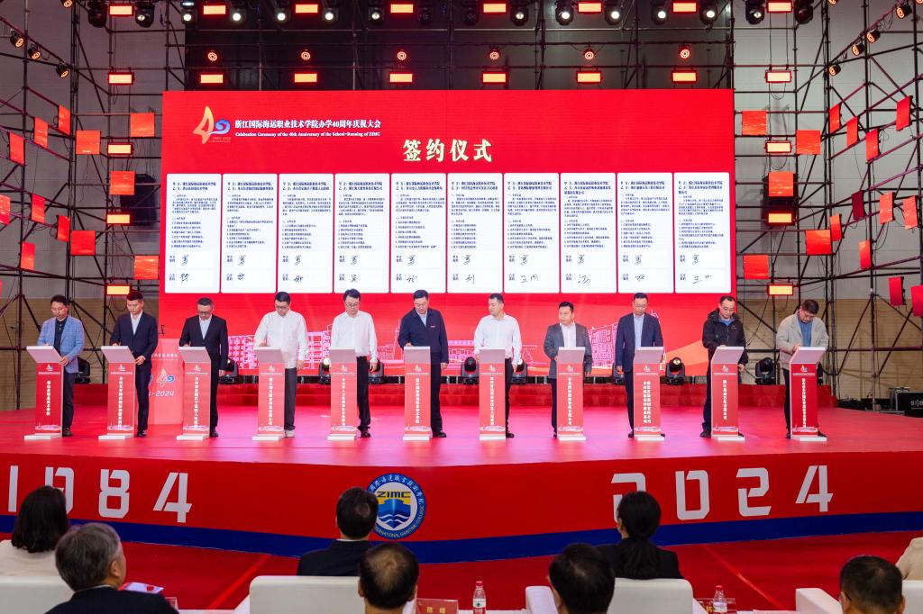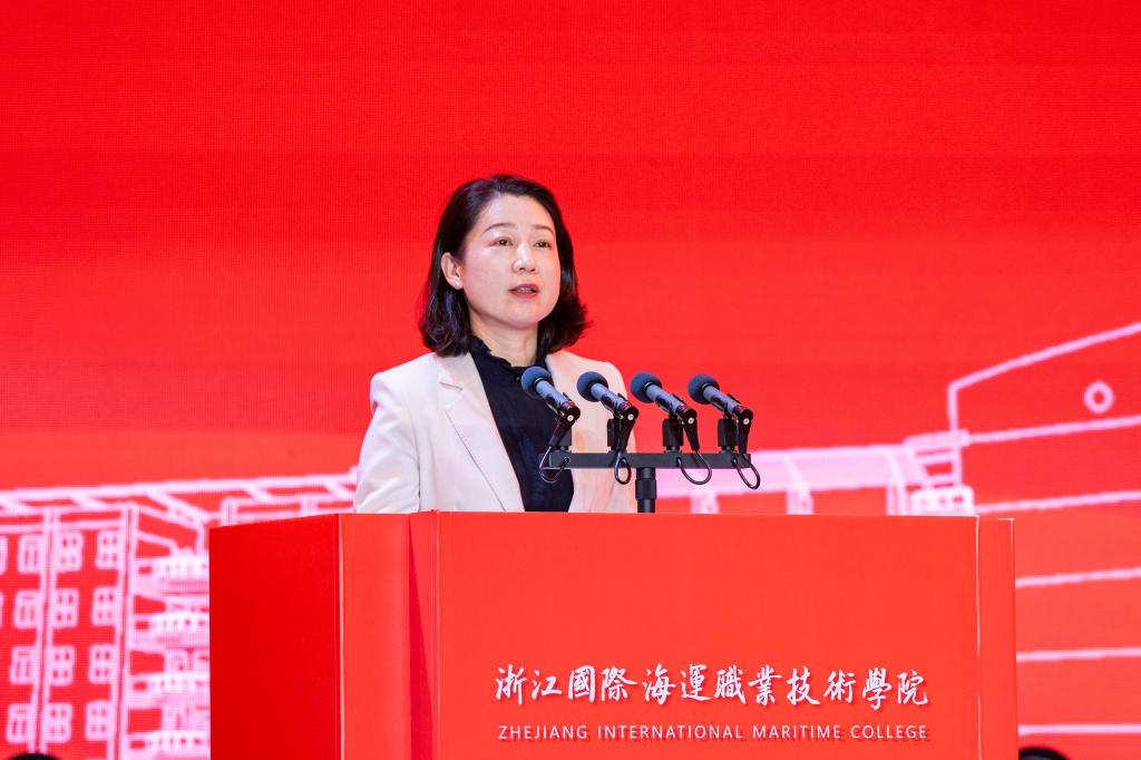 舟山市人民政府副市长洪碧代表市政府充分肯定了学校40年的办学成就。四十年来,学校始终坚守为党育人、为国育才的初心使命,励精图治、砥砺前行,取得了一系列扎实而丰硕的办学成果。学校坚持“立德树人”,深化育人模式改革,面向地方需求开展“百千服务行动”,为我市培养输送了大量高素质技能人才,大批校友在港航、渔业、旅游和石化等行业领域发光发热、贡献力量;学校坚持服务地方,主动聚焦地方发展战略,专业布局全面对接海洋产业,自觉当好舟山经济社会发展的参与者、实践者和推动者;学校坚持办出特色,不断提升治校能力和水平,在省对高职院校的年度综合考核中不断争先进位。她表示市委市政府将一如既往、加大力度支持学校的高质量发展,为学校办学创造更好条件,推动学校实现更高水平的提升。同时提出最诚挚的三个希望:希望学校以办学40周年为新起点,深入学习贯彻全国教育大会精神,持续保持铸魂育人的“本色”,大力培养大国工匠、能工巧匠、高技能人才;希望学校持续强化海洋职教的“特色”,放大海运办学的优势,建设高水平专业群,建成海洋特色鲜明的高水平职业院校;希望学校继续紧贴地方发展需求,紧贴产业、紧联企业,构建更为完善的产教融合协同育人体系,吸引更多在舟学子乐学舟山、扎根舟山、服务舟山。