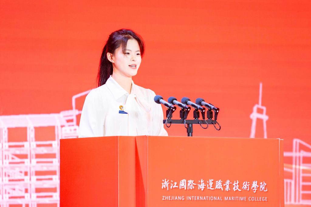 学生代表吴垚雅的发言充分展示了新时代海运青年的责任与担当。