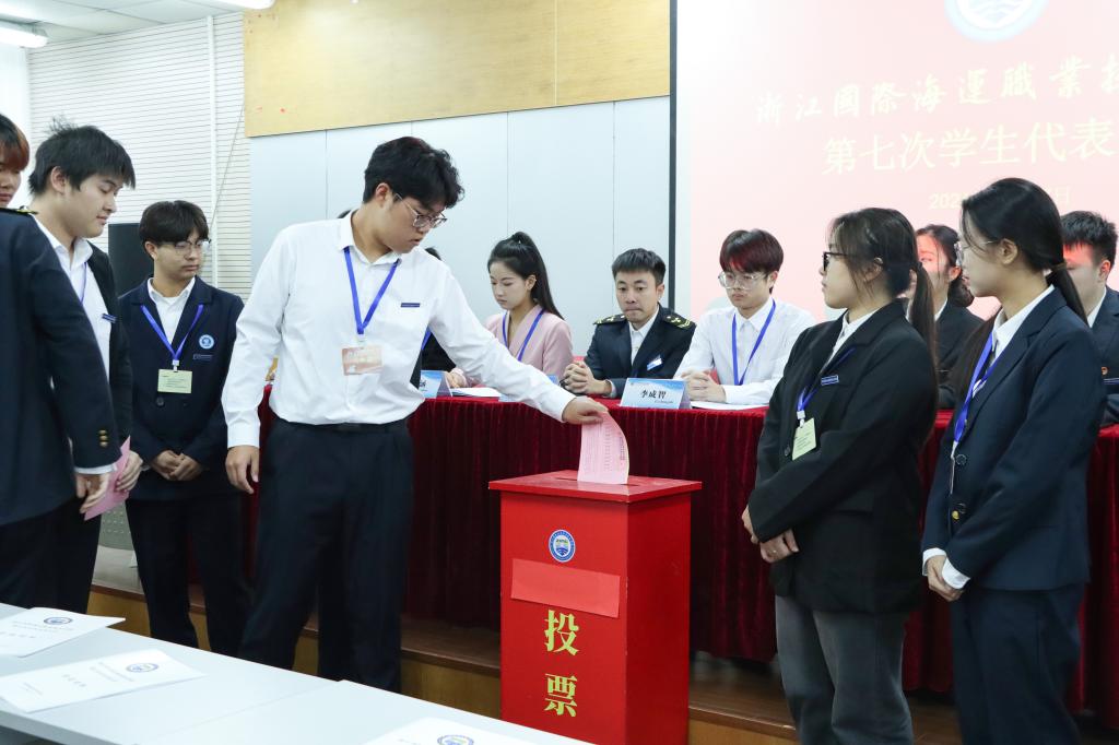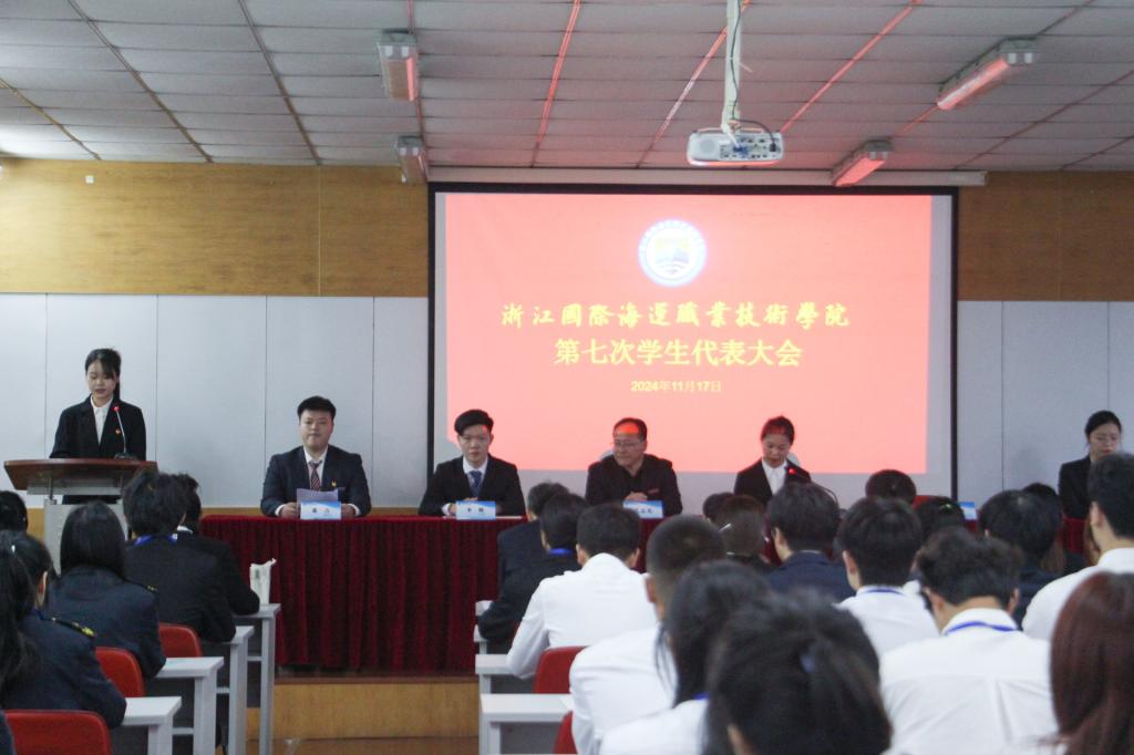 11月17日,我校第七次学生代表大会在国际海员培训楼三楼会议室隆重召开。校党委副书记孔志光、市学联主席李辉、浙江舟山群岛新区旅游与健康职业学院学生会执行主席杨玉莎、校团委副书记余娜娜,各二级学院团委负责人和97名学生代表出席会议。
