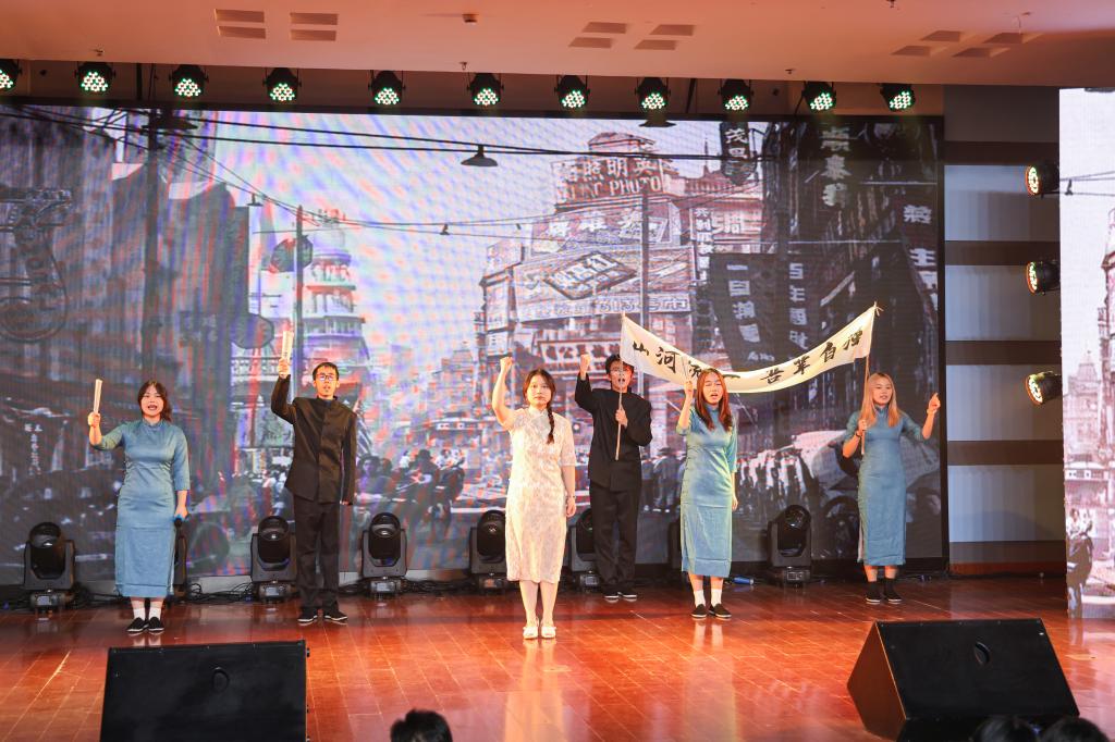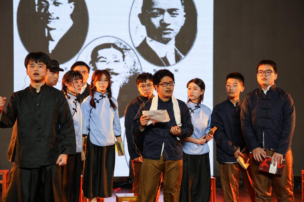 航海工程学院党总支讲述的《破晓》,展示了1919年广大爱国青年学生为反对北洋政府在《凡尔赛和约》上签字,纷纷不惧生死,挺身而出,诠释了光照千秋的的五四精神。