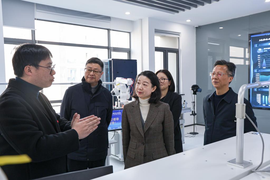 洪碧副市长一行先后参观了国家级虚拟仿真实训中心、数字孪生PLC实训室、海洋科创大楼建设选址处等,并现场查看了学生宿舍楼条件提升工程项目建设成果。她指出,学校在提高学生专业教学、实习实训、生活保障条件等方面不遗余力、成效显著、值得肯定。
