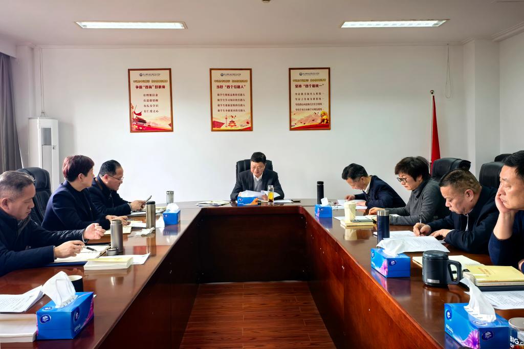 123日,校党委理论学习中心组在行政楼309会议室举行2025年第1次专题集中学习会。会议主题是深入学习贯彻习近平新时代中国特色社会主义思想和党的二十届三中全会精神,巩固深化党纪学习教育成果,坚决做到衷心拥护“两个确立”,忠诚践行“两个维护”,坚持党的全面领导,全力推动学校事业高质量发展。党委书记苏为泽主持会议并讲话。